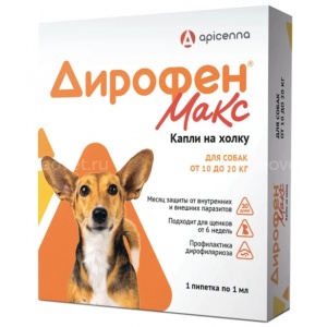 Дирофен Макс 120 мг для собак от 10 до 20 кг, 1 пипетка х 1 мл